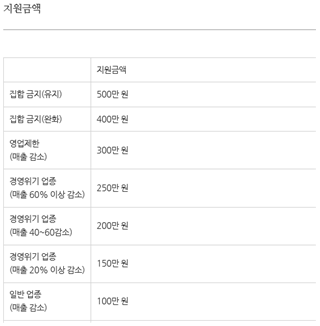 집합 금지 지속이 6주 이상 된 가게는 500만원,
